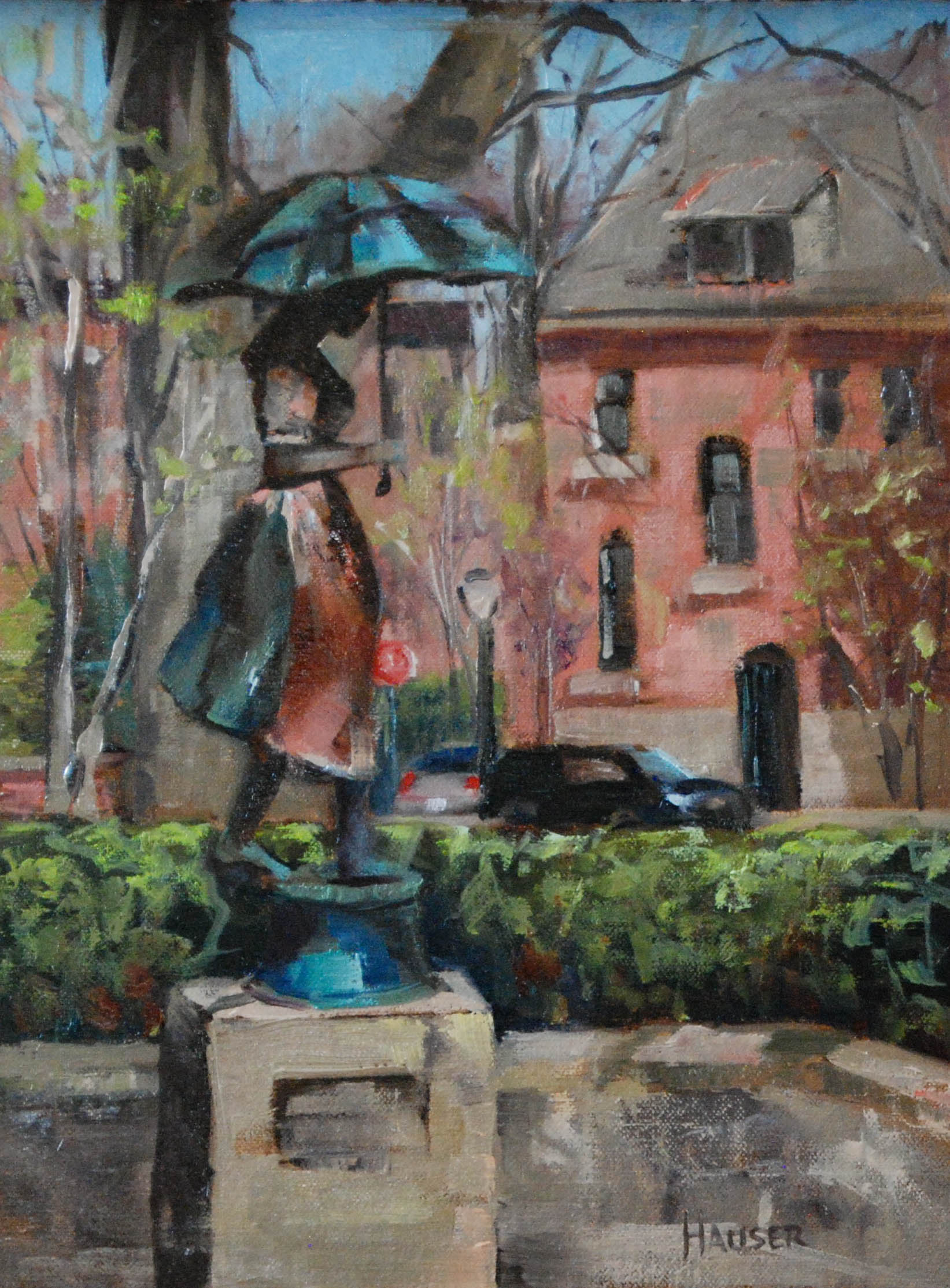 I attended an Ohio Plein Air Society paint out at Schiller Park in German Village. I was drawn to this lovely lady. An admirer said that in a few weeks, the fountain will be turned on and that the water drips from the umbrella. I will have to go back! This painting is available but will be on display in a show of Schiller Park paintings for a bit. Contact me if you are interested!